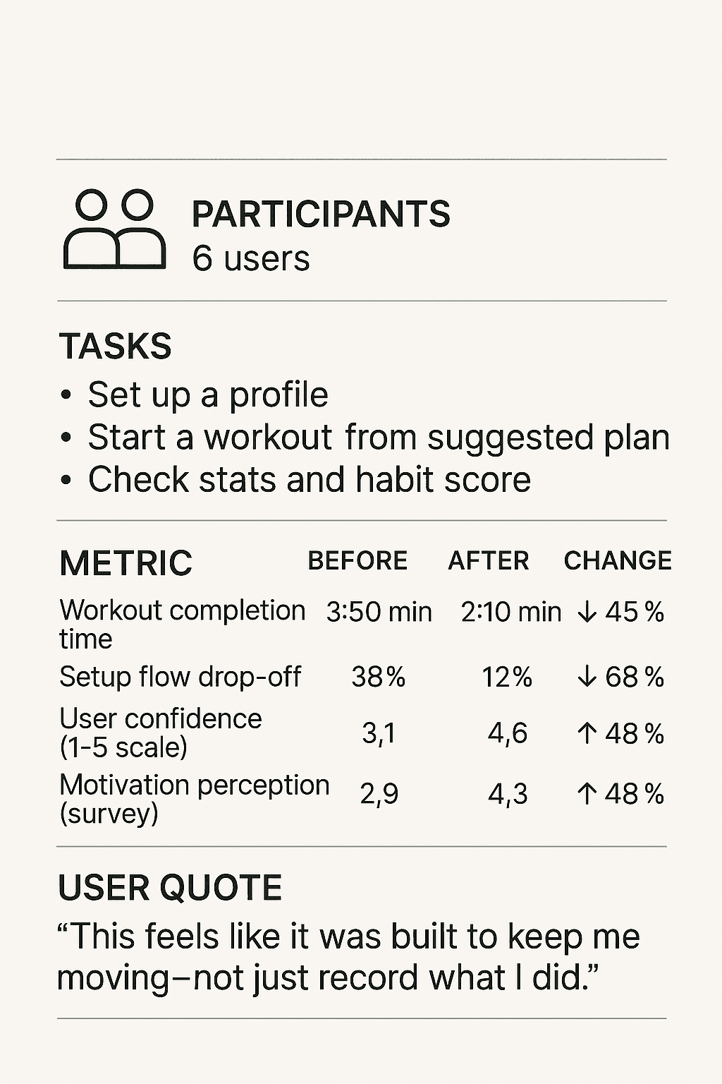 Interviews: 5 users (ages 20–35), beginner to intermediate