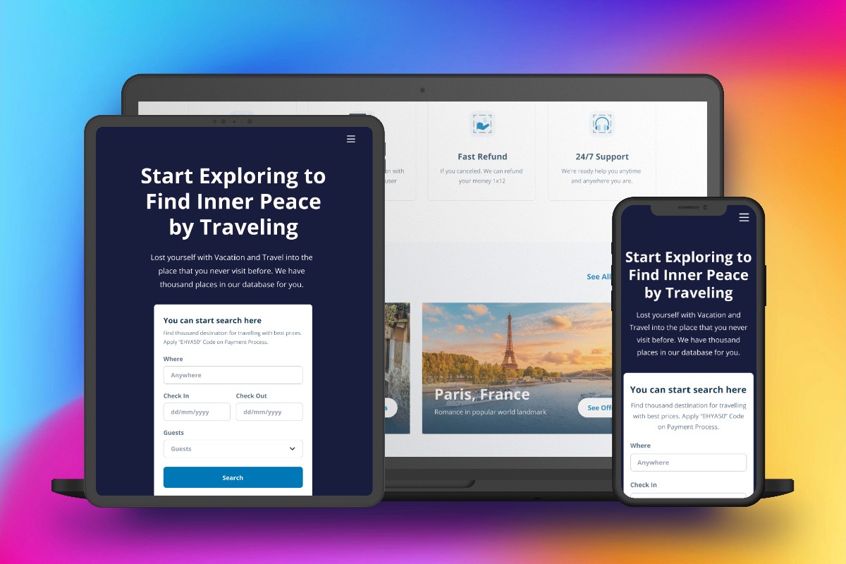 All layouts were designed mobile-first, then adapted for tablet and desktop.