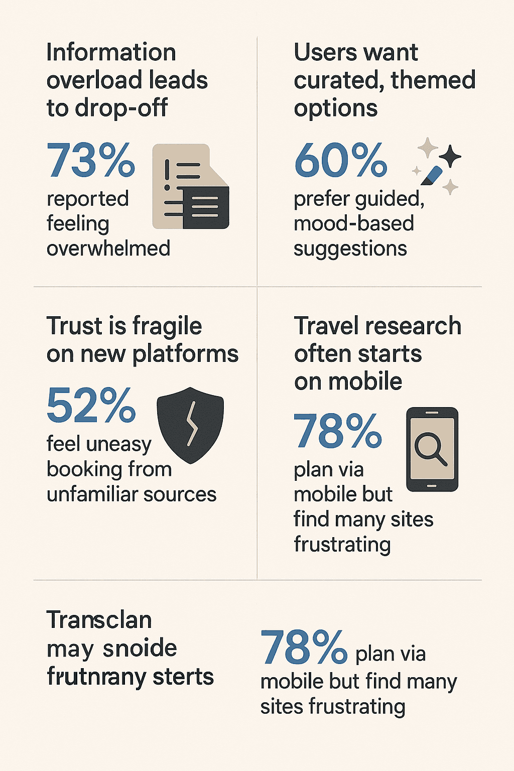 Uncover user pain points in current travel planning platforms