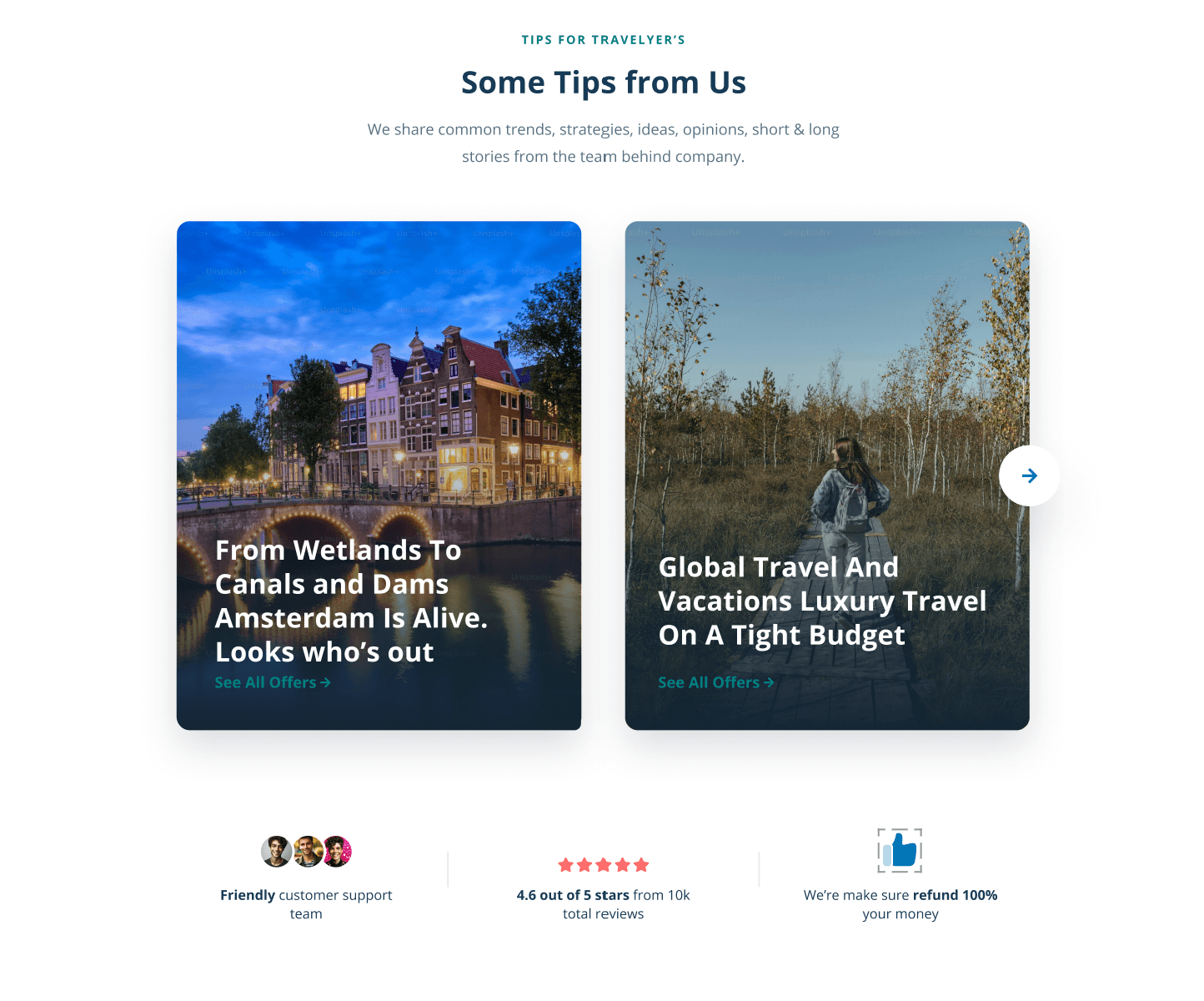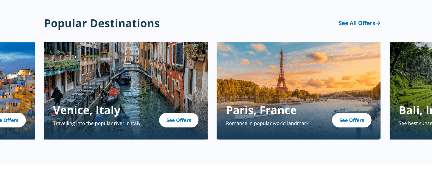 Side-by-side destination cards enabled fast comparison and visual engagement.
